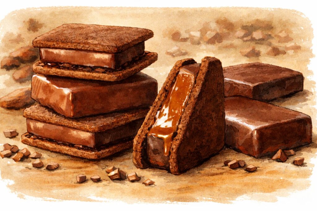 ショーコラのもう一つの魅力は、食感の組み合わせにあります。外側のクッキーはバターの香りが感じられるサクッとした仕上がりで、中に挟まれた生チョコレートはとてもなめらかな口当たりです。サクサクとした食感とやわらかなチョコレートが一緒に楽しめるため、一口ごとに違った印象を感じる人も多いようです。さらにチョコレートコーティングが加わることで、軽いパリッとした食感も生まれます。このように、ひとつのお菓子の中で複数の食感を味わえる点がショーコラの大きな特徴といえるでしょう。